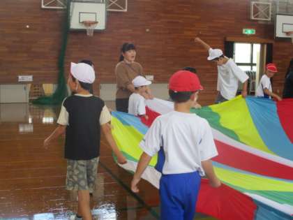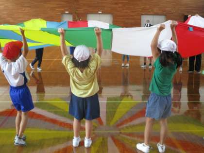 西陣中央小学校に近くの他3校が集まり、勇気100パーセントの曲に合わせて、バルーン演技を練習しました。5月以来、久しぶりの再会で、緊張しながらも、バルーンをしながら少しずつ打ち解けることができました。
