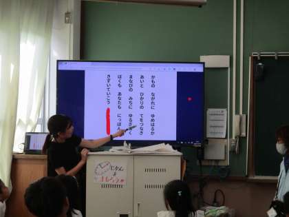 室町小学校の校歌を練習中の1年生です。