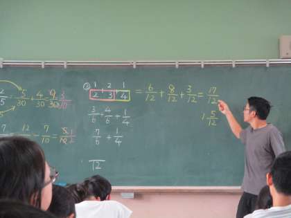5年生の算数では分数の計算に取り組んでいました。