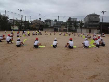 運動場で練習しました。