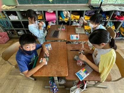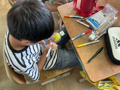 来週行われる運動会で使う太鼓をつくりました。丸くつるつるすべるペットボトルにも、子たちはダイナミック琉球に込めた気持ちや思いを描いていました。また、ペットボトルを使った演技も力が入っており、来週の運動会に向けてとても気合がこもっています。ダイナミック琉球の演技や、個々のオリジナリティにあふれた太鼓をぜひ見に来てください