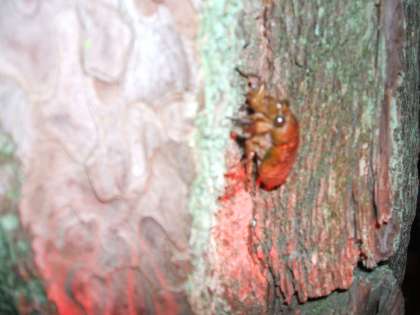 誰かが穴から出てきたばかりのアブラゼミの幼虫が木を登っていくのを見つけました。それからは,あちこちで歩いている幼虫をいろんな子が見つけることができました。