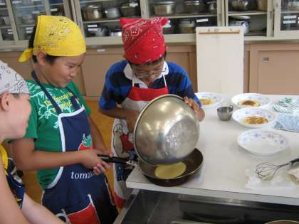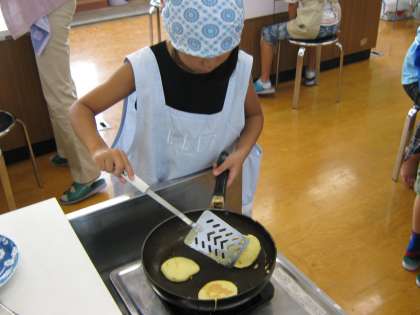 4年1組は,登校日に家庭科室でホットケーキを焼きました。