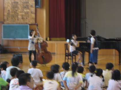 そのあと,みんなで歌を歌ったり,ピアノとコントラバス,パーカッションと歌の演奏を聴いたりしました。