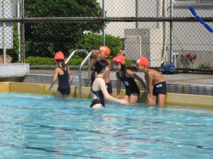 今回は,大阪のスイミングスクールで指導経験がある学生ボランティアを中心に,教頭先生を含む5名が指導にあたりました。
