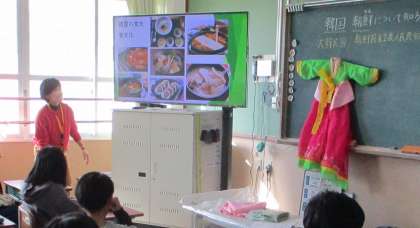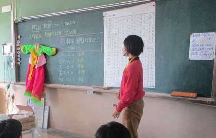今日の学活ではお隣の国の韓国・朝鮮の文化について学習しました。