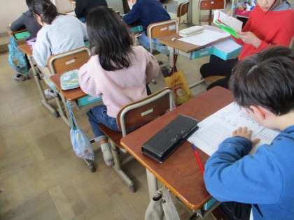 韓国の文化について知った後は、韓国語で自分の名前や友達の名前を書いてみました。ハングルの表を見ながら、文字をひとつひとつ確認しながら名前を書いていました。