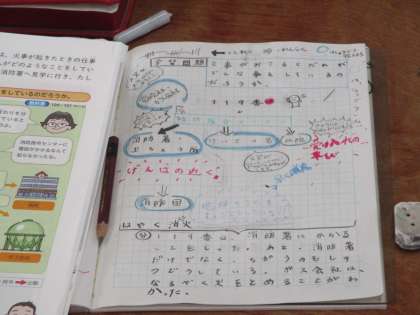 学んでいました。自分のノートにわかりやすく黒板をうつしている