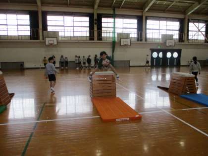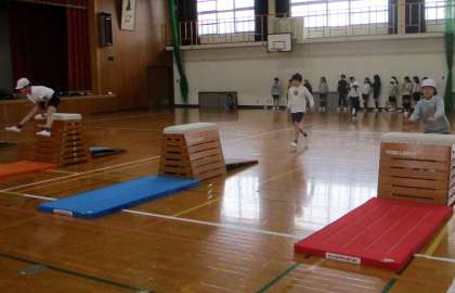 今日の体育の授業もとびばこに取り組みました。