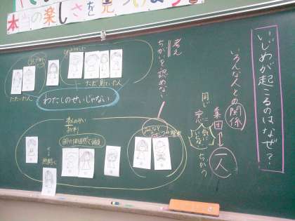 道徳科の学習で「わたしのせいじゃない」という教材をもとに、「いじめ」について考えました。「いじめが良くない、してはいけない」ということは、全員が賛成してからのスタートでした。では、「なぜいじめは起こるのか」という点についてグループやみんなで話し合いました。いじめることを誰かのせいにすることや、無関心であること、集団に合わそうとするために正しい判断ができなくなることなどに気づき意見が交わされました。