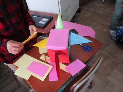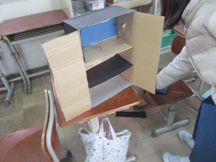 この日の4年生は図画工作科の学習で、段ボール箱を