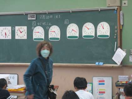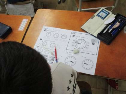 この時間の1年生は時計を見て時刻を考える問題に
