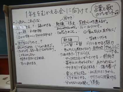 自分達が1年生のころ不安だったこと、これから1年生に大切にしてほしいことを出し合い、