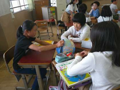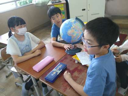 社会の学習で地球儀を使いました。