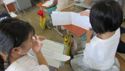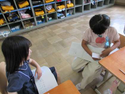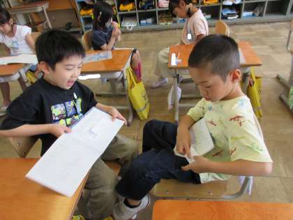 さらに、ペアの友達にノートを見せて、指をさしながら考えを説明できる子もたくさんいました。
