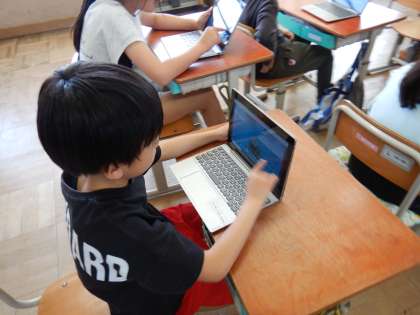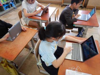 授業の終わりには友達の作品を見合い、鑑賞会をしました。