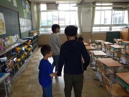 手をつないで教室に1年生を連れていく姿がとても素敵でした。