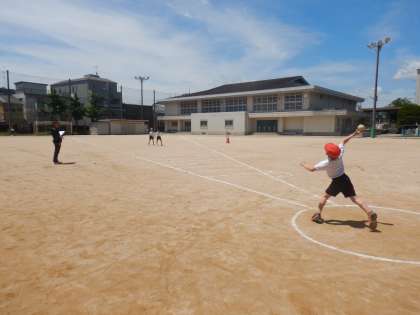 今日は、『ソフトボール投げ』に取り組みました。