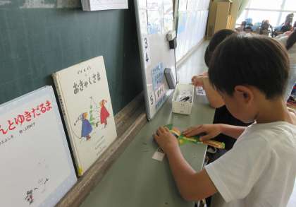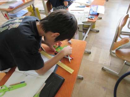 算数科では、「長さ」の学習をしています。これまで、30cmものさしで長さを測ったり、mmとcmの表し方について知ったりしました。今日は、10cmの長さを指でつくり、量感を生かしてものの長さの予想をしました。えんぴつや、のりなどの長さを、指で測り予想したり、実際の長さを確かめたりして、意欲的に活動する姿が見られました。