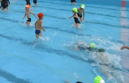 2年生では、今日から水遊びが始まりました。まずは水に慣れるというめあてで、低い水位から始めています。プールサイドでのルールや水泳学習の流れの確認をして、みんなで水の中を歩いたりワニ歩きをしたりして楽しみました。これからも安全に気を付けて学習を行っていきたいと思います。