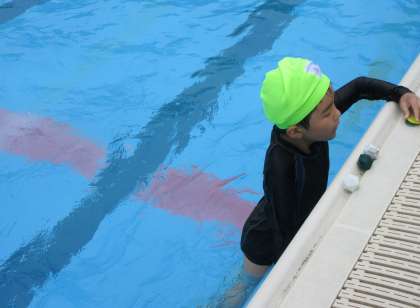 今週から水遊びが低水位ではなくなりました。水の中に顔をつけたり、水の中でぶくぶくと息を出したりしながら、水泳学習を行いました。恐怖心のある子どもたちもいるので、無理はせず楽しみながら水に慣れていくことができるようにしたいと思います。