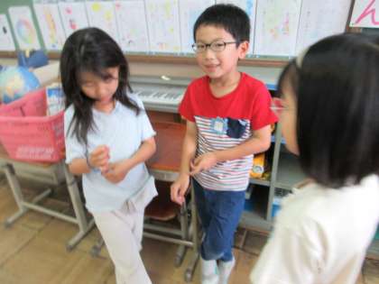 6月の目標「もっとあいさつをする」を振り返り、7月の目標を立てました。