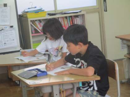 「おおきなかぶ」の読み聞かせを聞いて、みんなで音読をしたり、場面ごとに登場人物の気持ちを考えています。何度もお話を聞いているうちに登場人物が出てくる順番もばっちり覚えてホワイトボードに貼ることができました。この日は、かぶを植えるおじいさんの気持ちを吹き出しに書いて考えました。
