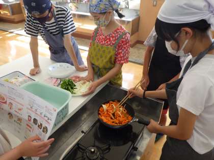 炒める野菜の順番を考えながら、がんばっていました。