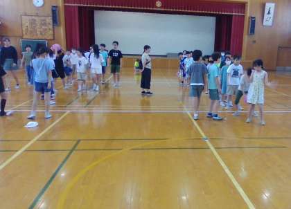 中間休みに体育委員会主催のボール送りゲーム大会がありました。2分間で、前の人から後ろの人に何回ボールを渡せるかを競うゲームです。1年生から始まって、4年1組が123回という最高記録を出しました。すごいです!