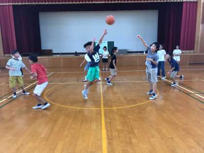 バスケットボールでは、担当者が丁寧にルールを説明。