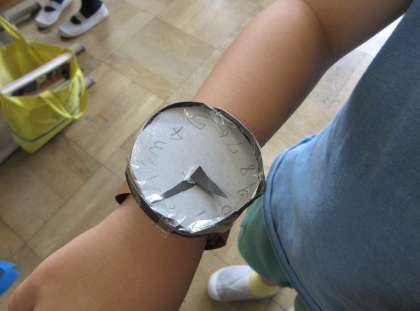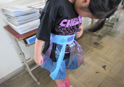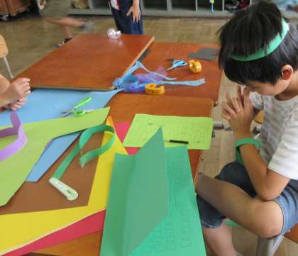 イメージが固まってくると、それになりきるためにわっかに飾りをつけたり、他の道具をつくったりして、思い思いにへんしんしました。王冠をつくったり、おしゃれな服を着たりする子もいれば、サラリーマンや警察官、忍者、うさぎなど、テーマを決めている子もいました。最後はそれぞれのファッションショーをして、記念写真を撮りました。