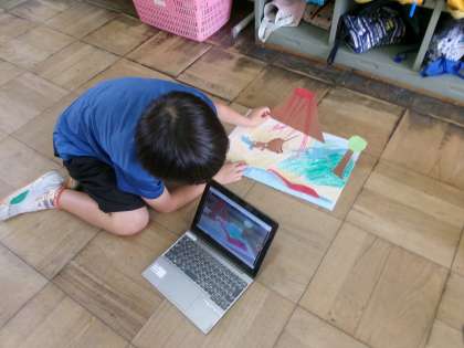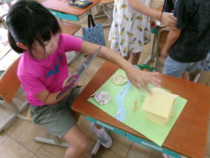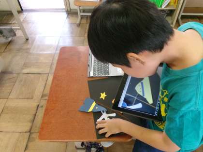 図画工作科の学習で制作した作品を実際に動かしながら解説動画を撮影しました。