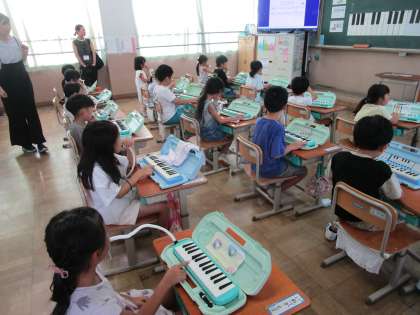 どんな風に鍵盤ハーモニカで吹きたいか考え、表現していました。