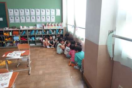 不審者が学校に入ってきたときの避難訓練をしました。