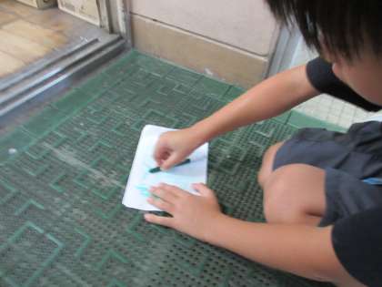 紙とクーピーを使ってデコボコを写し取りました。