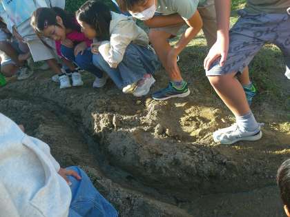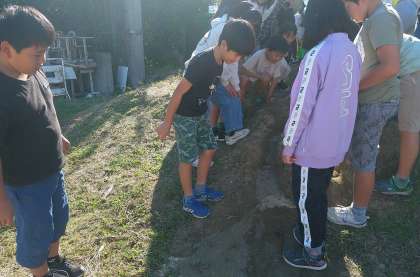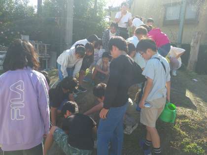 どこが削れていくのかや流れの速さなどを注意深く観察していました。