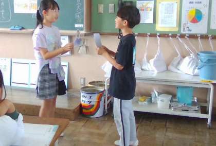「雨ととの様」というお話をもとに、きまりについて考えました。きまりを守ろうとする門番役、との様の言うがままに門を開けさせようとする家来役になって、役割演技をしました。演技をした人は役になりきって言葉を言い、見ている人も一生懸命見ていました。