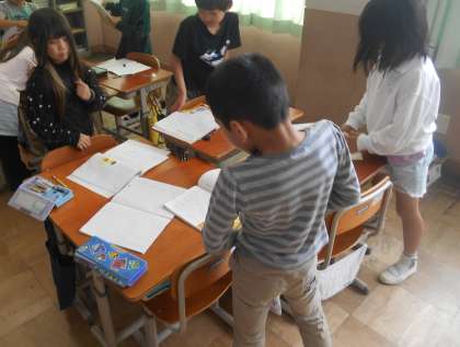 今日はグループに分かれて1人1文ずつ順に読んで練習しました。