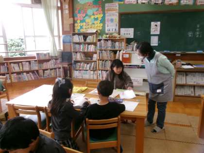 今日は、学校司書の先生と一緒に百科事典の使い方について学習し、グループで協力してクイズにチャレンジしました。百科事典のページを繰り、答えが分かるのが楽しく、目を輝かせて取り組んでいました。