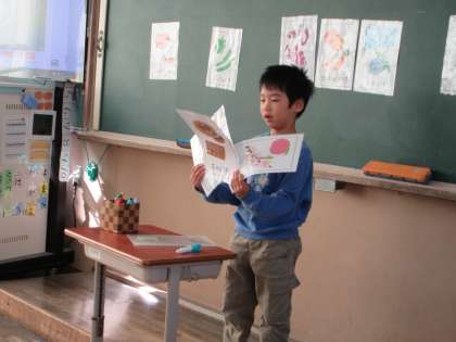 英語で言われた色を教室の中から探すなど、ゲームをしたり、歌ったりしながら親しむことができました。
