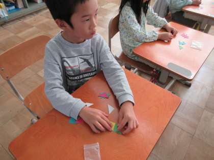 また、どのようにその形を作ったのか、ペアで説明しあうこともできました。