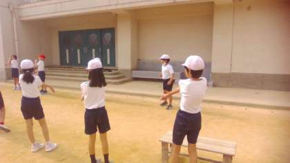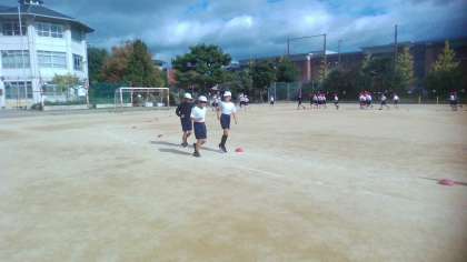 体育では、ゆっくりペース走の学習をしています。