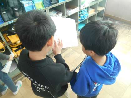 そこでそれぞれが図にかいた上で、友だち同士で考え方を伝え合いました。