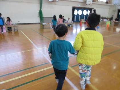 コーナーを回る時は、自分たちから積極的に幼稚園の子どもたちに声をかけて誘う姿がありました。