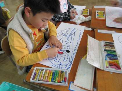 何を書こうかなぁと迷ったときは友達からアイディアをもらえたり、書いている途中でもお互いの絵を褒めあったり…