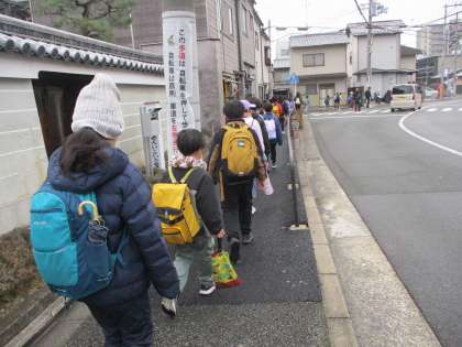 今日は、朝早い出発にご協力くださり、ありがとうございました。朝から元気に出発しました。横断歩道や信号など、大人任せにせず自分たちでもよく考えて安全に気をつけて歩くことができていました。さすが、4年生!