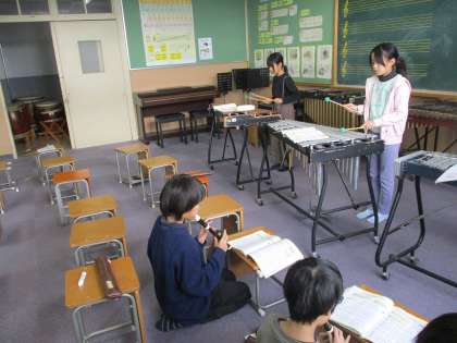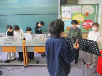 音楽では、2学期の終わりごろから合奏を始めました。それぞれ自分が希望した学期で合奏を楽しんでいます。