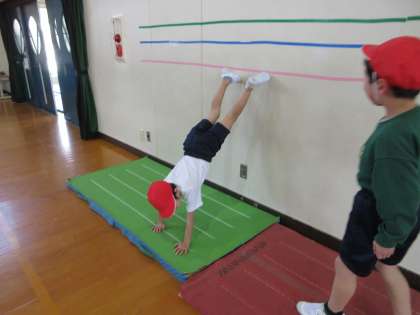 友達を技を見合い、完成度を高めます。
