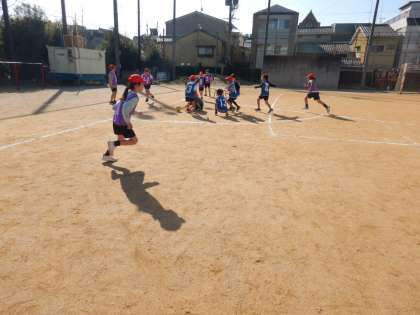 ハンドベースボールの学習に取り組んでいます。