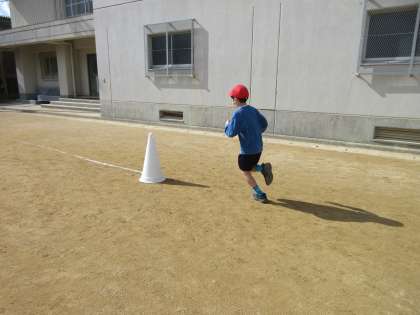 2年生では「ゆっくりかけあし」の学習を行いました。自分のペースを一定に保って3分間走ったり、友達とペースを合わせて走り続けたりしています。寒い中ですが、楽しそうに走る姿が見られました。ただ速く走るのではなく、長く走るためにペース配分を考える経験を積み重ね、今後に生かしてほしいと思います。